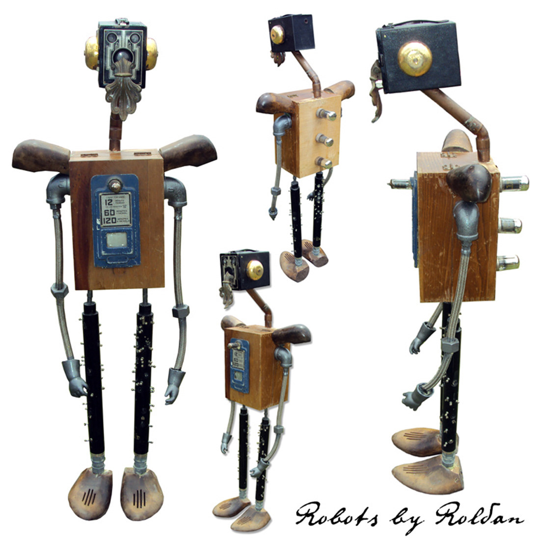 Robot Sculptures made from everyday recycled materials. "One mans trash another mans treasure"